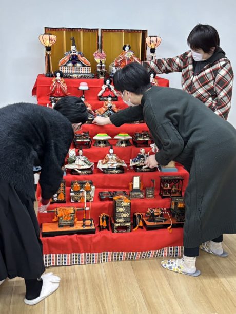 来月のひな祭りに向けて、今年も祈りを込めて、みんなでお雛様を飾りました。