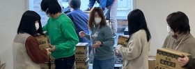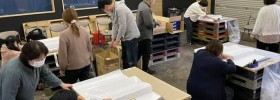 箱詰めしたお酒はなんと300箱!しかも短期間で失敗も間違いもなく美しい仕上がり。トラックへの積み込みには、女性も力を貸し...